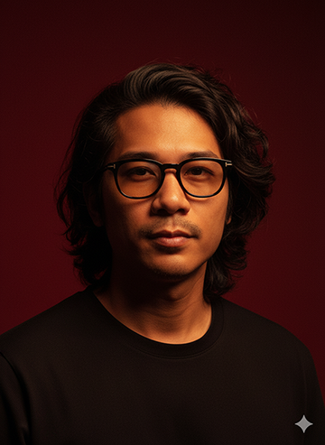 seperti referensi. Background polos merah gelap.