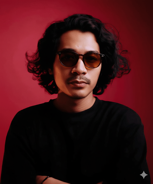 2.5 FlashPlease create a vertical potrait shot in 1080x1920 format using the exact same face features, characterized by stark cinematic lighting and intense contrast. Captured in a slightly low, upward-facing angle that dramatized the subject’s jawline and neck, the composition evokes quite dominance and sculptural elegance. The background is a deep, saturated crimson red, creating a bold visual clash with the model’s luminous skin and dark wardrobe.