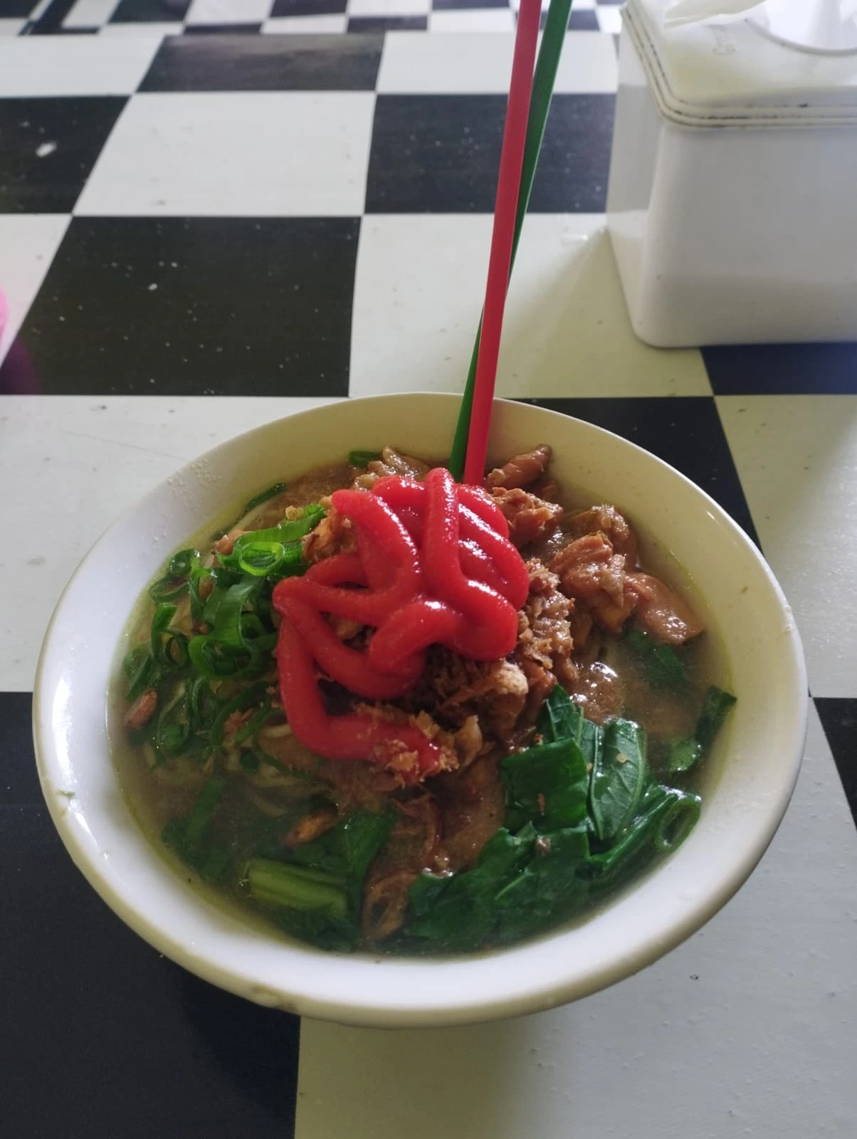 A professional Indonesian food advertising poster showcasing a bowl of Mie Ayam Sedap Spesial — an Indonesian chicken noodle dish. The bowl is centered, filled with glossy yellow noodles topped with tender seasoned chicken chunks (ayam kecap gurih), fresh green vegetables, fried shallots, and a few crispy fried wontons on the side. Add subtle steam rising from the bowl to show warmth and freshness. The noodles and chicken shine under soft studio lighting, emphasizing texture, juiciness, and warmth. Background: A smooth gradient from deep red on top blending to golden brown at the bottom, creating an appetizing and energetic feel inspired by Indonesian street food. Add a bit of bokeh light flare for cinematic depth. Text Layout & Style: Top (Main Title): 👉 “MIE AYAM SEDAP SPESIAL” — large bold 3D yellow-gold text with dark red shadow and soft glow. Below Title (Tagline): 👉 “GURIH NIKMAT SAMPAI SUAPAN TERAKHIR!” — white bold modern typography slightly curved. Left Side of Bowl: “AYAMNYA MELIMPAH” (bold white-red typography) Right Side of Bowl: “MIENYA KENYAL BANGET” (same style, angled for energy) Call to Action: At the bottom center in huge white playful bold text: 👉 “ORDER SEKARANG!” Footer Bar (Orange-Gold Gradient): Left side: WhatsApp logo followed by number 📞 +62 813 2209 5574 Right side: Store address in dark text 🏠 Jl. Kenanga No. 15, Bandung Design & Lighting Style: 9:16 portrait layout, suitable for social media (Instagram, TikTok, etc.) Cinematic lighting with soft reflections and warm shadows. High realism on noodles, chicken texture, and glossy soy sauce glaze. Typography: bold, fun, and appetizing — representing Indonesian street food vibes. Slight text glow and subtle drop shadow for readability. Depth of field for strong focus on the bowl. Mood: warm, inviting, savory, premium yet cozy atmosphere."