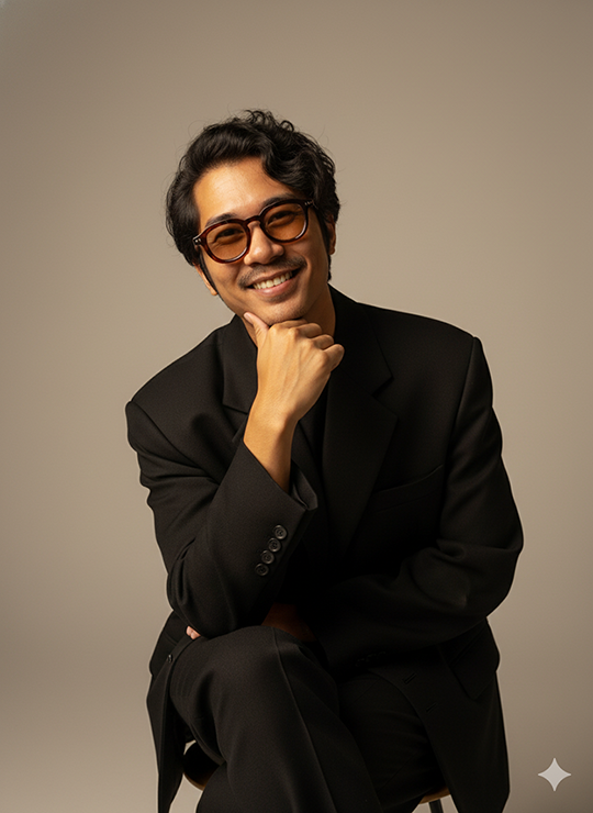 2.5 FlashPose: sitting with one hand resting gently under her chin, looking at the camera with a friendly expression and a smiling teeth. Studio setting with plain backdrop, soft cinematic lighting, minimalistic composition. Ultra realistic, sharp facial details, natural textures, elegant and sophisticated style. Professional photography, 8K quality, high contrast warm light aesthetic.