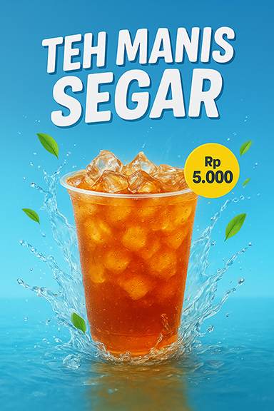 A vibrant and refreshing advertising poster for “TEH MANIS SEGAR”, designed in a square (9:16 portrait) composition.