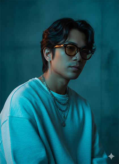 Design style: high-fashion editorial aesthetic, modern K-pop